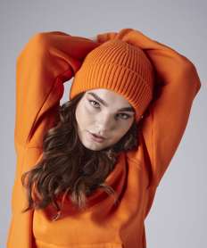 Engineered knit ribbed beanie