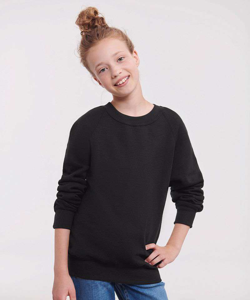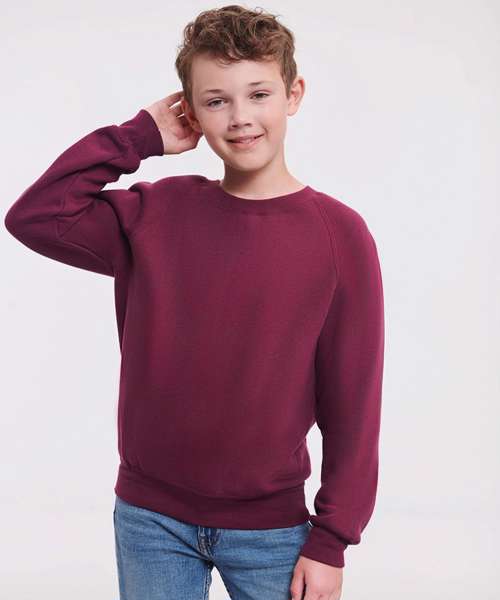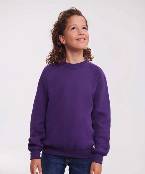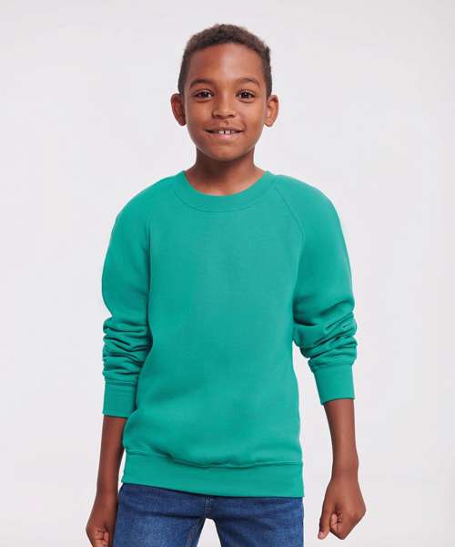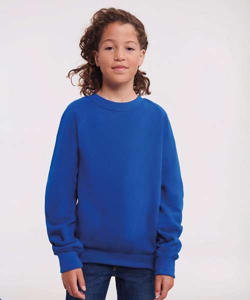 Iconic school sweatshirt. Twin needle coverseams on neck. Raglan sleeve cuffs and waistband for extra durability. Herringbone back neck tape. Spotshield stain resistant coating for fabric protection. Fade resistant.