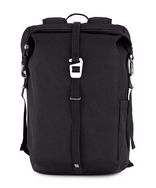 Rolltop back with multiple pockets and a 16 litre capacity. Recycled polyester 900D with EcoShield DWR finish. PU backing and recycled zip tape to all zips. Padded compartment fits tablet (up to 9") and laptop (up to 13").