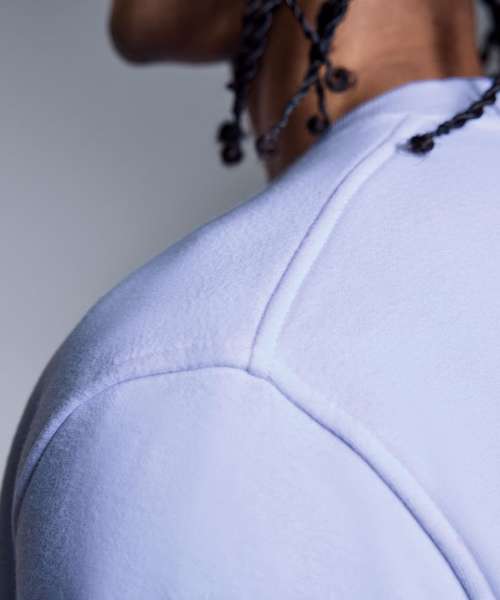 Soft hand feel. Ribbed crew neck. Brushed inner fleece. Twin-needle detail. Cut-and-sew 2x1 ribbed cuffs and hem. Self-coloured neck size label. Relaxed fit.