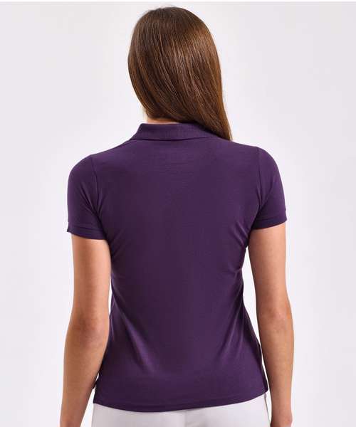 Classic fit polo for women, ribbed knit collar and sleeve cuffs. Twin needle stitching on hem. Two self coloured buttons on placket. Product contains no branded neck label. Removable Kimble or looped garment tags. Inner seam label holds important product information on one label with a second label containing brand information which can be cut-away. Please note old stock may contain a fixed branded label.