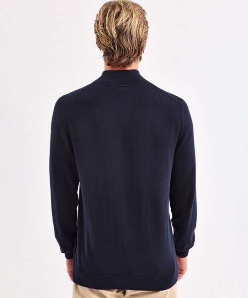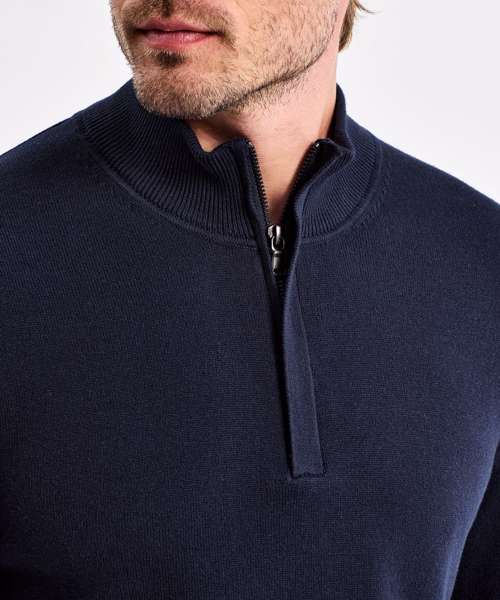 Embrace a modern silhouette with the cotton blend 1/4 zip sweater. A perfect piece for between seasons layering.