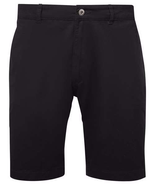 Men's chino shorts with two swings pockets and two back jet pockets with button fastening. Zip fly and button fastening to the front. Soft finish fabric. Product contains no branded neck label. Removable Kimble or looped garment tags. Inner seam label holds important product information on one label with a second label containing brand information which can be cut-away. Please note old stock may contain a fixed branded label.