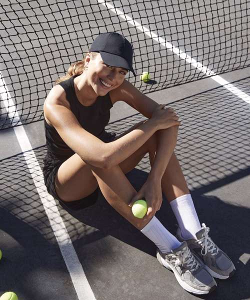 Inspired by the preppy collegiate aesthetic, this cap is ready for anything – from golf to tennis and anything in between. Breathable fabric, a Coolmax® sweatband and a curved peak are all designed to keep you comfortable and protected while you play. A ponytail opening keeps swept-back hairstyles securely in place, making it perfect for off-duty athleisure styling, too. Containing 100% recycled polyester.