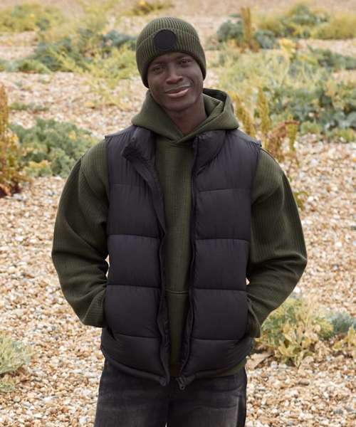 Inspired by the Fashion patch beanie (B442R), this cuffed ribbed knit has universal appeal. The engineered crown offers maximum comfort, while a circular patch is the perfect place to make a style statement. A single-layer knit lends itself to indoor and outdoor styling and can be dressed up or down. Contains certified recycled polyester.