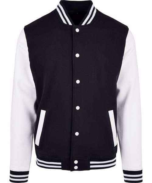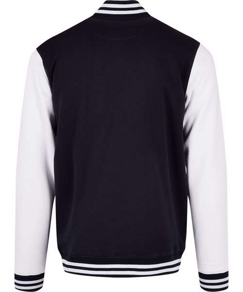 Sporty jacket for men in college style. Full-length button panel, wide ribbed hem and sleeve cuffs and side welt pockets. The cotton mix of the jacket is perfect for refinement and can easily be customised.