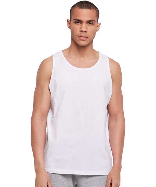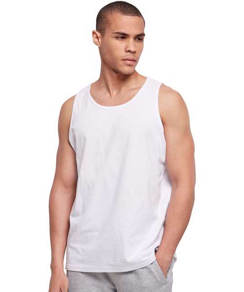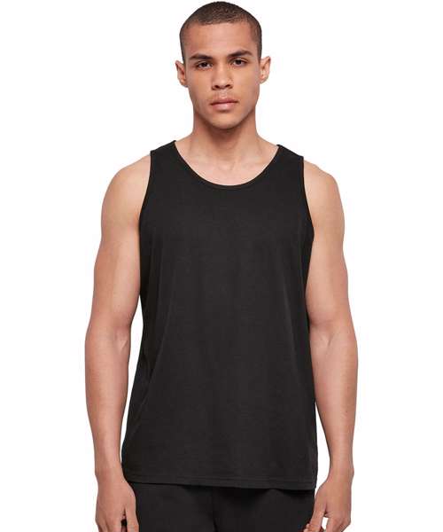 A sporty tank top basic for workouts and summery looks. The men's top is made of 100% cotton and offers a classic sleeveless design with a crew neck. The fit is casual regular and provides plenty of freedom of movement to do sports or other activities. Additionally, the tank top can be further refined with flock or silkscreen printing as well as embroidery.