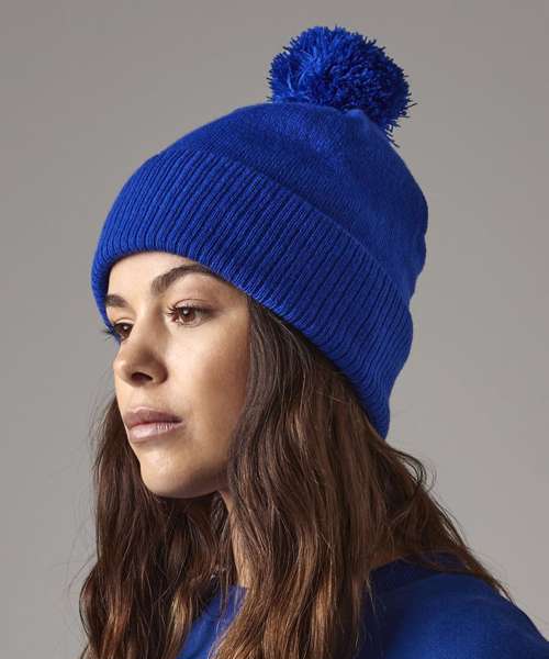 Ribbed cuff. Dual style - cuffed or slouch. Self-coloured pom pom. Microfleece lining for comfort and warmth. TearAway label for ease of rebranding. Reach certified.