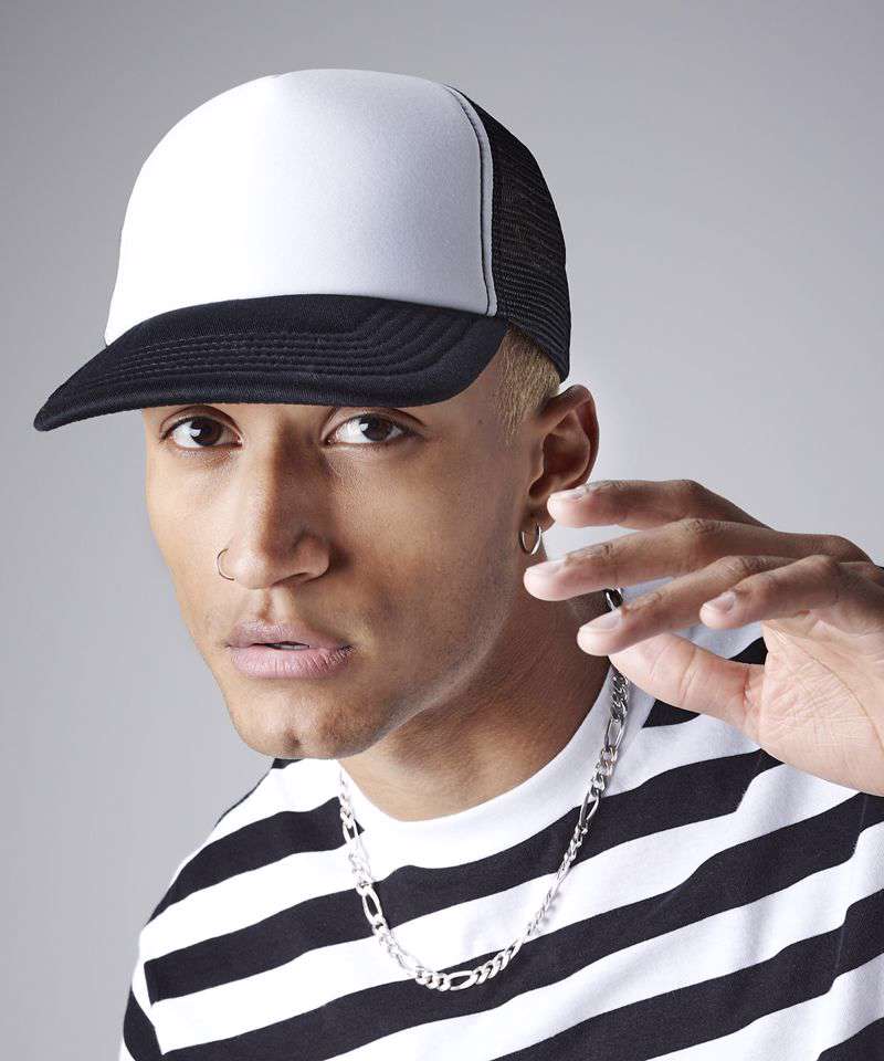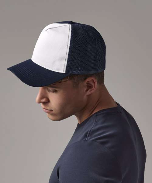 100% Polyester front panel. 100% Polyester mesh rear panels