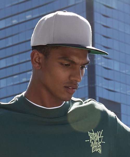 - Flat peakGreen underpeakRetro-style snapback size adjuster