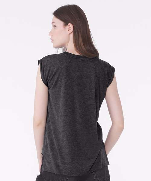 Perfectly flowy and forward enough to wear everywhere, this must-have muscle tee is an on-trend essential. Rolled cuffs add an element of style, and a high-low, raw-edge hem gives it need-now appeal.