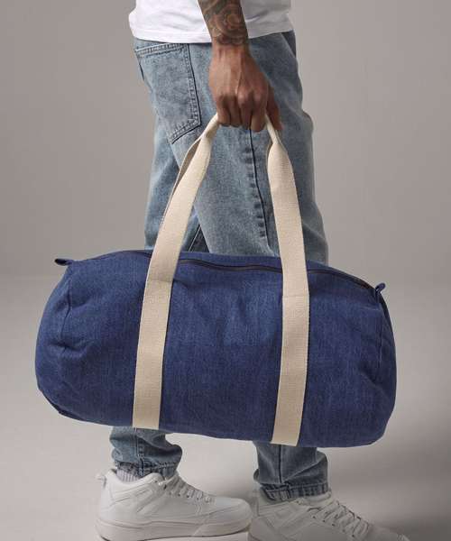 Carried by hand or over the shoulder, the denim barrel bag is a popular style contender. Available in a soft-touch denim blend, this relaxed barrel-shape bag makes the perfect gym kit holdall or weekend bag.