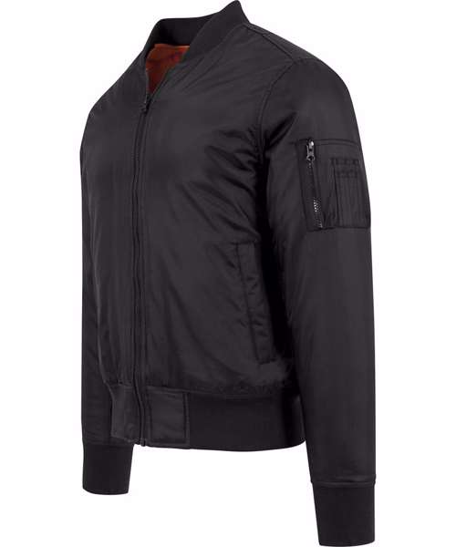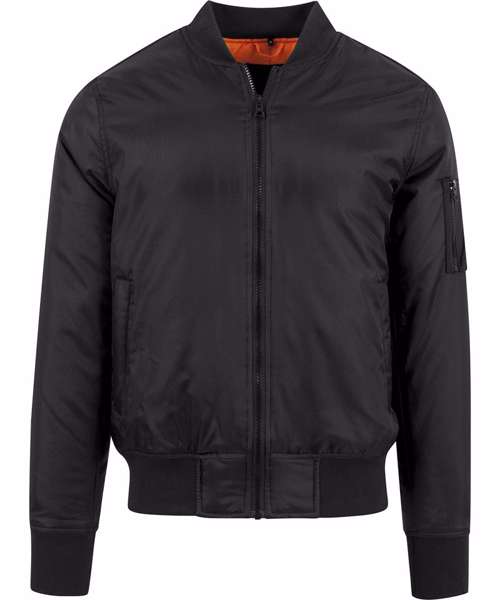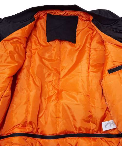 The classic bomber jacket offers a contrast orange colour lining and typical pocket on the upper arm The jacket features set-in sleeves, and a full through zip. This product is ideal for rebranding, print and embroidery and also includes an inside zip for easy front and back access.