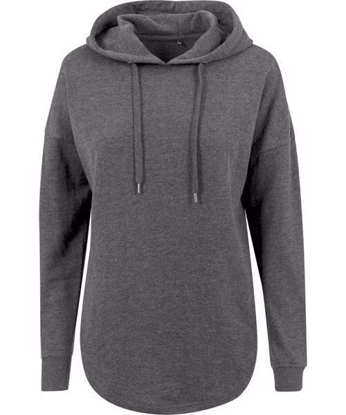The Women's oversized hoodie is based on the classic oversized look. The hoodie features a few casual details such as its rounded slit hem, wide ribbed cuffs on the sleeve, and a hood with flat drawstrings. This basic item can be embellished with embroidery, flex printing, or screen printing.
