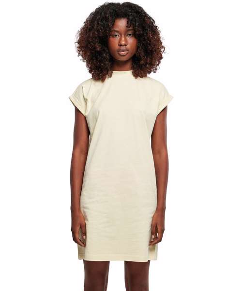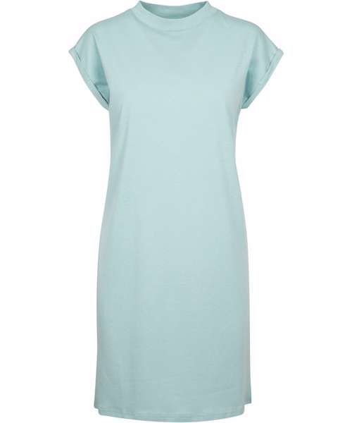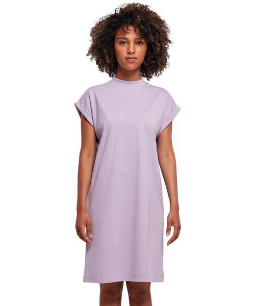 This casual basic is the perfect combination of t-shirt and dress in cotton fabric and with overcut shoulders, it has a lovely soft shape. The mini stand-up collar and turn-up sleeves complete the stylish look. Ideal for screen and flex printing.