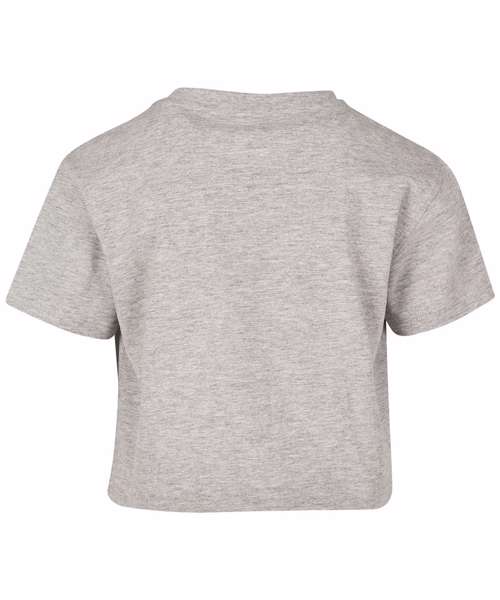 The girls cropped Jersey tee is a classic basic item with a trendy look. This shirt features a typical crew neck for a touch of nonchalance. While short sleeves make it ideal for warmer days, the shortened cut ensures that it will turn heads. The soft Jersey quality is ideal for silkscreen or flex printing.