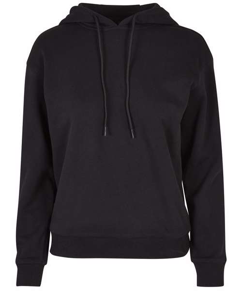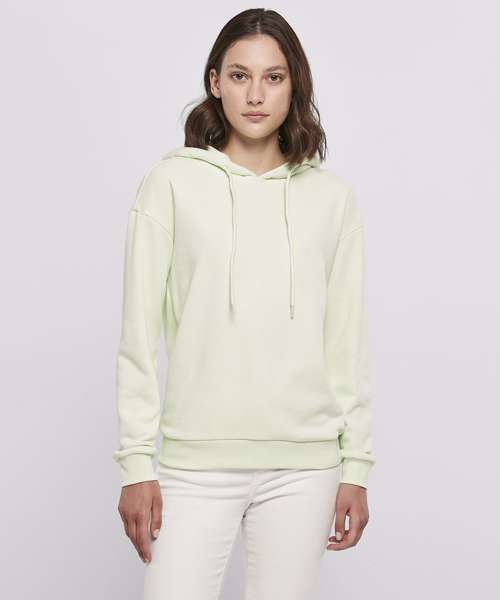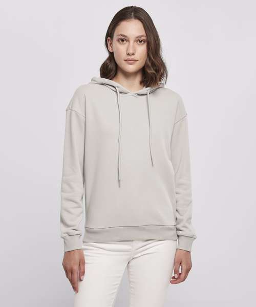 Presenting a hood with drawstrings and wide rib cuffs on sleeves and hem, this sporty women’s hoodie should be a basic piece of clothing of every wardrobe. The comfy oversize fit, with dropped shoulders, fits perfectly with the overall design. The hoodie is made of an uncomplicated cotton-polyester mix which can be further refined with embroidery, screen or flock printing.