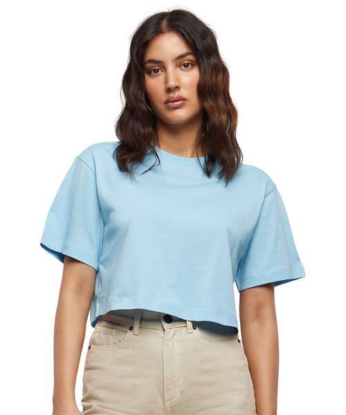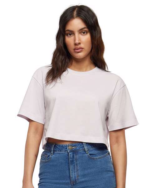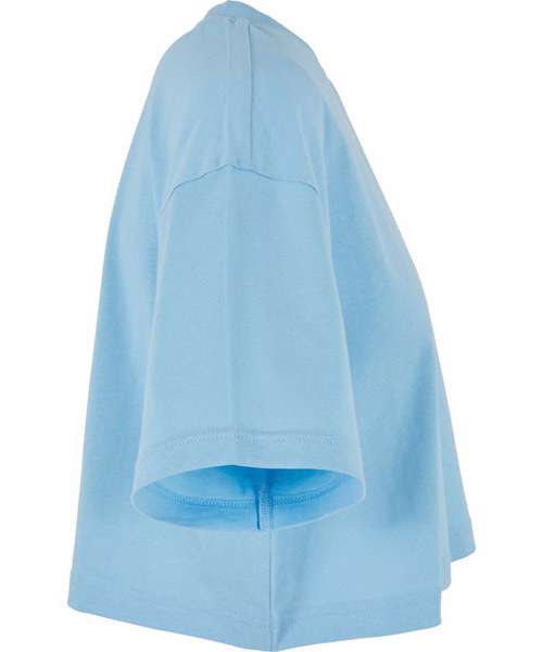 A sporty and summery women’s tee, with a slightly cropped cut, is enhanced by a casual oversized fit and short, wide sleeves – and a crew neck harmoniously rounds off the design. This top is made from a soft, reliable cotton fabric, which can further be refined with print motifs via screen or flex printing.