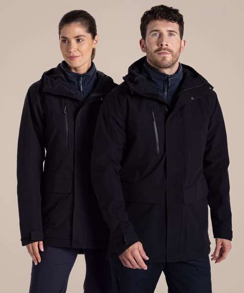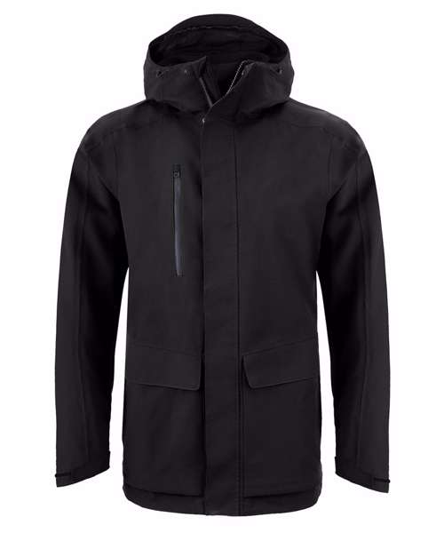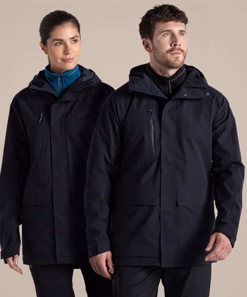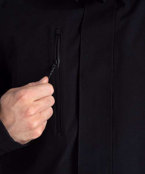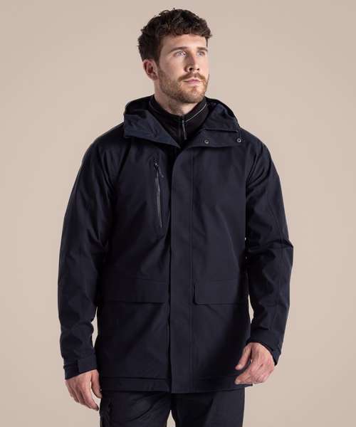 Top-notch longer length unisex jacket that’s ideal for braving the wet weather. The AquaDry membrane construction has an EcoShield DWR finish, grown-on hood and 6 pockets, including 2 bellowed stud-fastening lower with fused flaps and zipped side handwarmers.