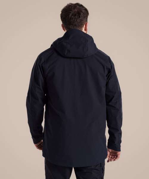 Cool wash with Craghoppers AquaDry waterproof cleaner or pure soap. Wash with similar colours. Do not use bleach or water softeners. Do not use fabric conditioners. Rinse well. Remove immediately after wash. Can be tumble dried on a low setting. Cool iron, if needed, on the outer side of the fabric. Do not dry clean. Do no wring. Close all fasteners before washing and drying. Use Craghoppers AquaDry reproofer if needed. Apply heat as per care instructions if DWR needs regenerating. Fabric may be damaged by solvents, alcohols and insecticides.