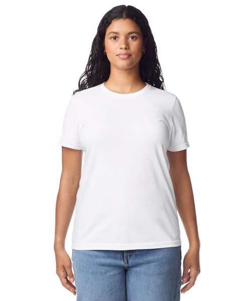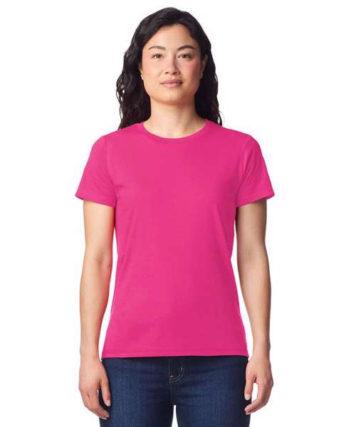 Made with our soft ringspun cotton and cotton blends, the Softstyle™ midweight women’s t-shirt features high stitch density fabric that offers a smooth printing surface, ideal for DTG. Ringspun fabric feels great against your skin. Non-topstitched, narrow width, rib collar. Taped neck and shoulders for comfort and durability. Semi-fitted, side-seamed body. High-performing black tear-away label.