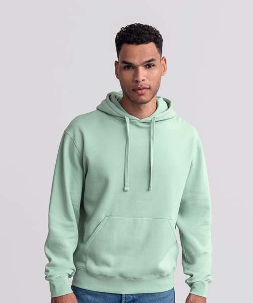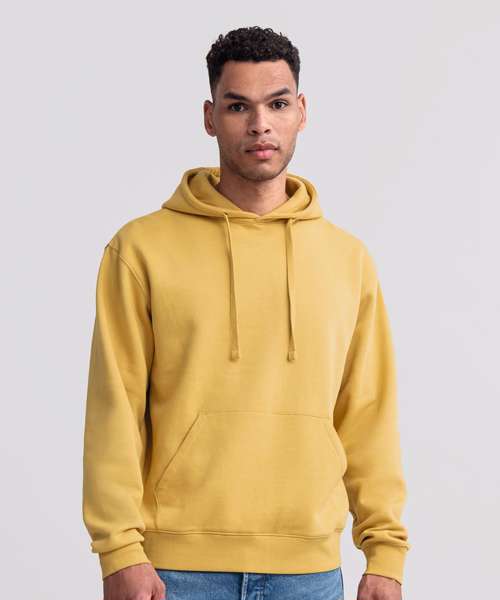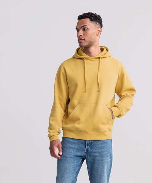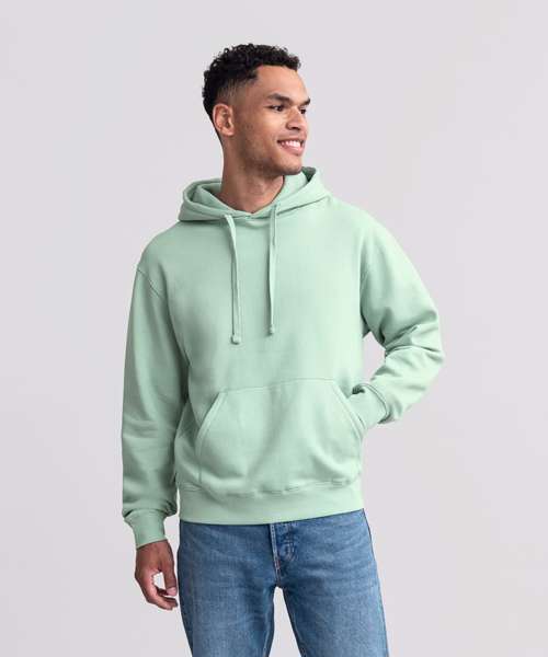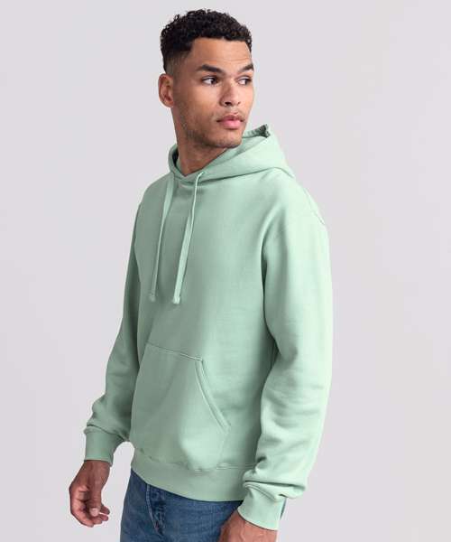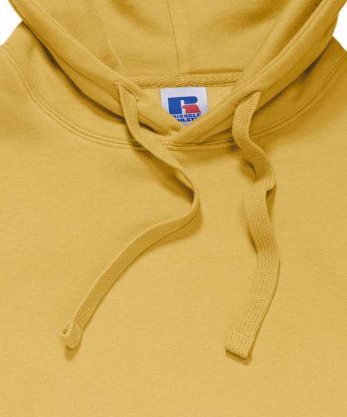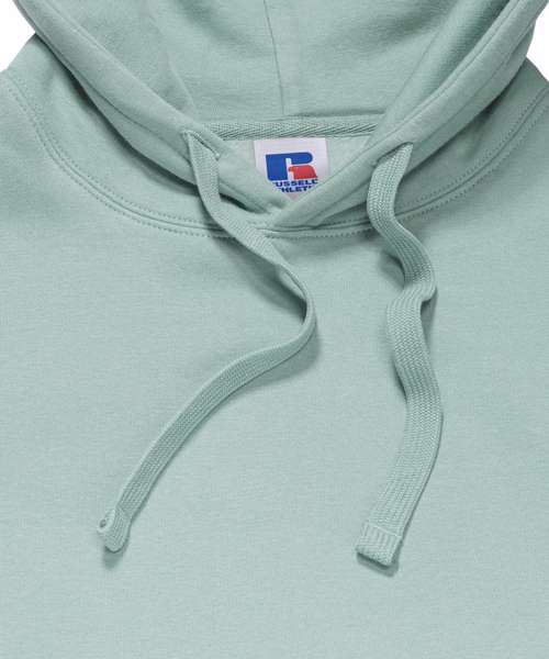 Ultra contemporary hooded sweatshirt in premium 3 layer fabric for a fuller, more substantial and luxurious handfeel. Coverseamed armholes, cuffs and hem. Coverseam around hood. Herringbone neck tape. Flat, chunky drawcords. MP3 access. Buttonhole eyelets. Front facing shoulder seams. Premium finishing. Part of the Russell sweatshirt family that continues to perform wash after wash.