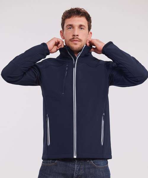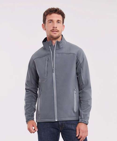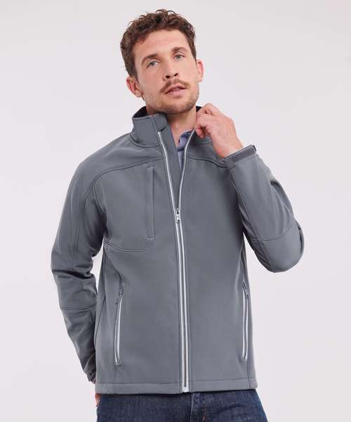 The Bionic softshell jacket is the latest member of the Russell Europe softshell family. This excellent fitting softshell jacket with its timeless design is highly water and wind-resistant. The Bionic-Finish® Eco enables the jacket to be water-repellent in an ecological way. Perfect for evoking a smart corporate image for those who are searching for a piece of modern outerwear to top off their corporate look.
