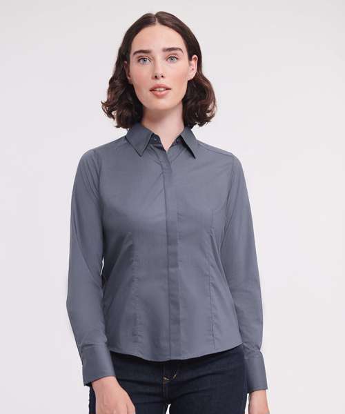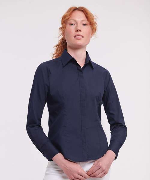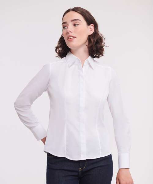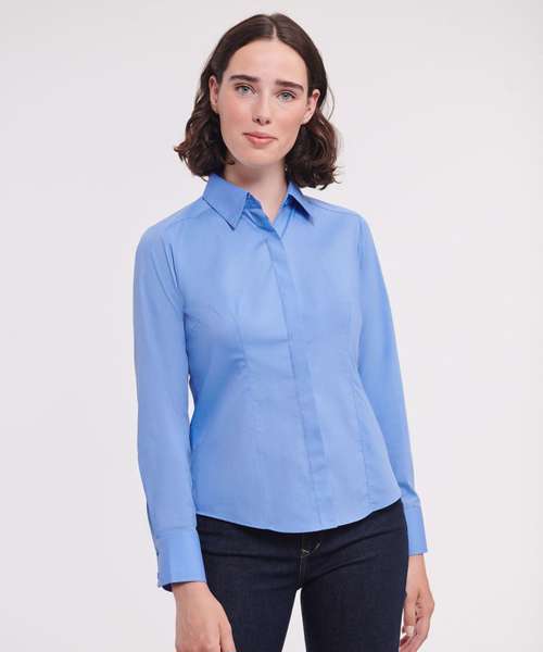 J924F: Women's long sleeve polycotton easycare fitted poplin shirt