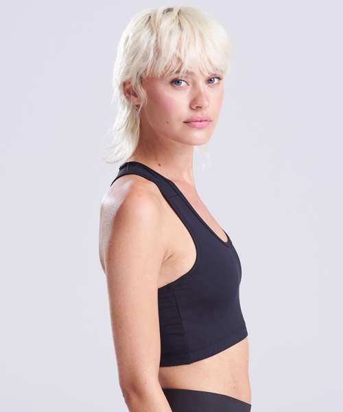 Have the freedom to stay focused during your workout. This stretch fabric crop moves with your body, keeping you dry and comfortable to maximise your performance. This sports crop top gives you freedom of movement with a racer back design and elasticated hem.
