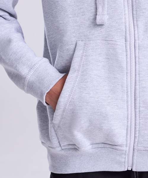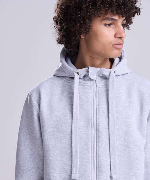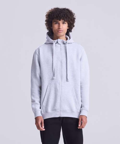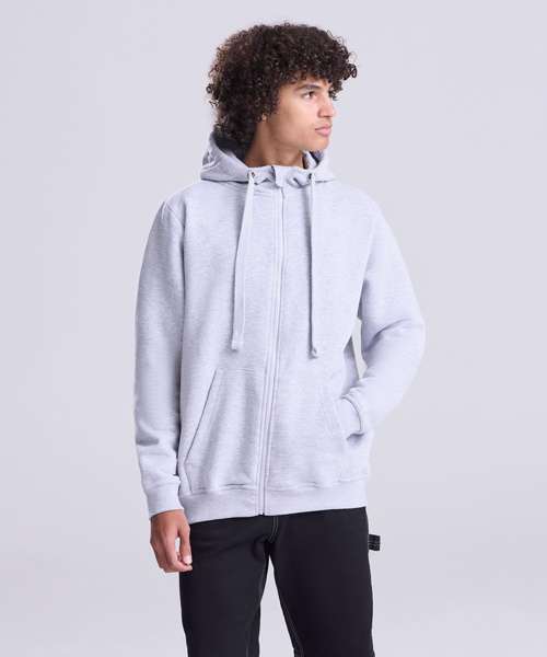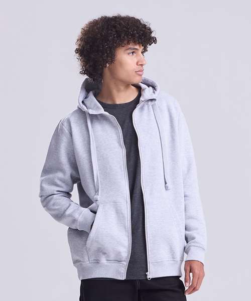 Heavyweight full zipped hoodie. Twin-needle stitching detail. Three panel hood with single Jersey inner. Flat lace drawcords. Split kangaroo pouch pocket. 2 x 1 ribbed cuffs and hem. Plastic zipper and puller with chin protector. Flat lock stitching detail on pocket. Soft cotton faced fabric creates ideal printing surface. Simple tear out label makes it perfect for rebranding. Worldwide Responsible Accredited Production (WRAP) certified production. Brushed inner fleece.