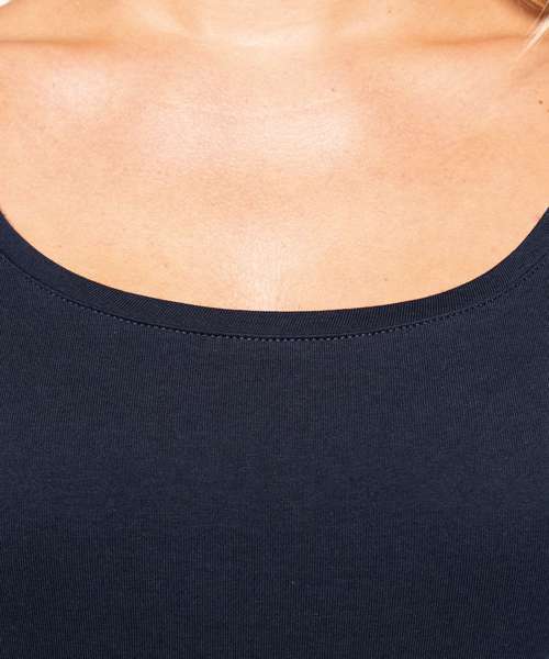 100% enzyme-washed combed cotton. Deep neckline. Fitted style. Contrasting neck tape; white for white colourway and Oxford grey for all other colourways. BSCI certified. Oeko-Tex certified.