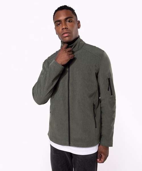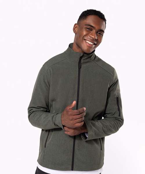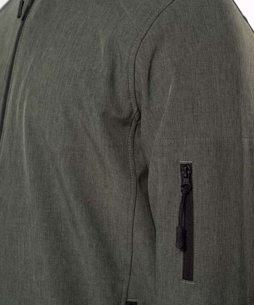 Softshell 3 layer bonded fabric. Breathable up to 3000 gsm/24h & water resistant up to 8000 mm. 95% Polyester 5% Elastane outer layer, performance membrane mid layer & micro fleece thermal inner layer. Zip through front. 2 zip closing side pockets. 1 zip closing left sleeve pocket. BSCI certified. SEDEX certified.