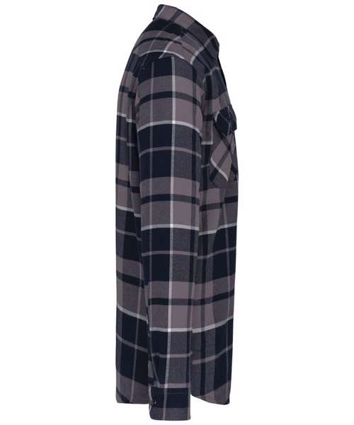 100% cotton flannel. Sherpa-lined body in 100% polyester. Lined and padded sleeves in 100% polyester taffeta. Very soft and warm shirt jacket. 2 flap chest pockets. Classic button placket. Adjustable buttoned cuffs. Rounded hem. No brand label at neck, only size tag for easy relabelling. Certified STANDARD 100 by OEKO-TEX® N° CQ 1007/8, IFTH.