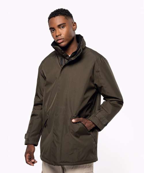 100% polyester Oxford outer - quilted polyester padding and lining. Zip fastening with tear release fastening and concealed press studs. 2 zipped outer pockets. 2 inside pockets (1 mobile phone pocket). Concealed hood. Fleece-lined collar. Zip access for decoration.