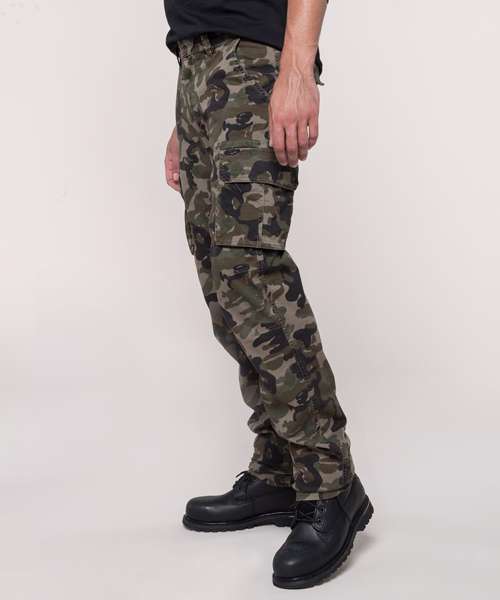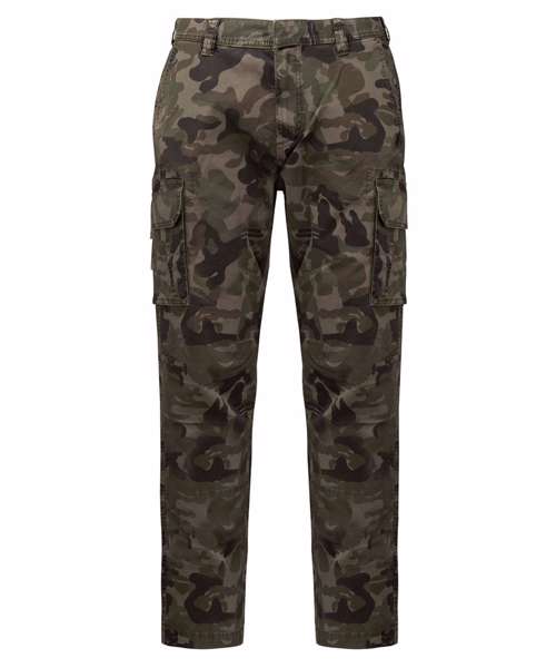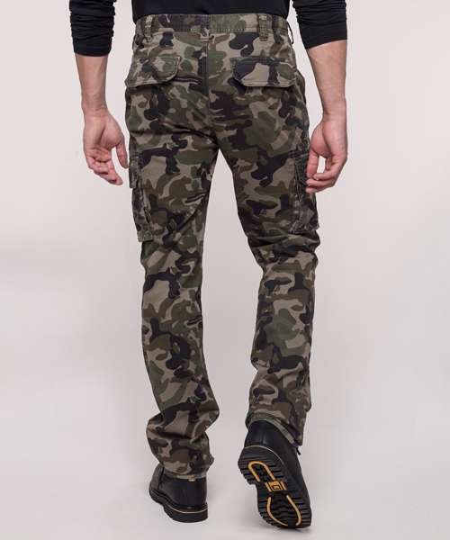 98% cotton / 2% elastane. Twill fabric with soft peached finish. Zip fastening and concealed metal button. 2 front pockets. 2 gusseted side pockets with flap. 2 back pockets with flap. This product has been specially treated and appears intentionally aged. This manufacturing process results in colour variations between products and makes each piece unique.