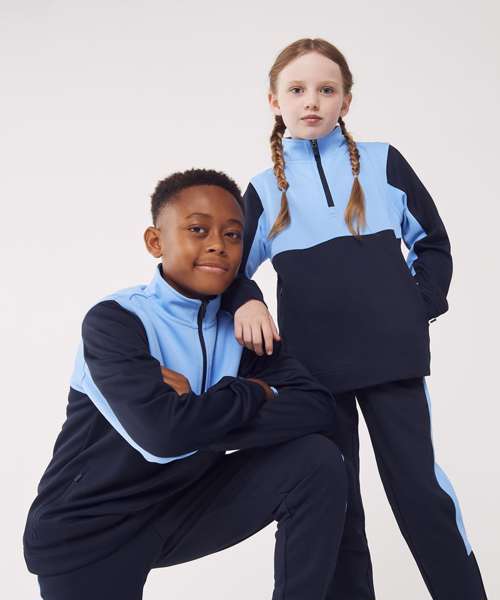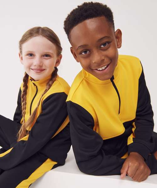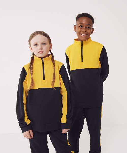 This 1/4 zip kids tracksuit top helps you perform in style. The feature-rich fabric, contrast panelling and tear-out label makes it a worthy addition to the Finden + Hales range.