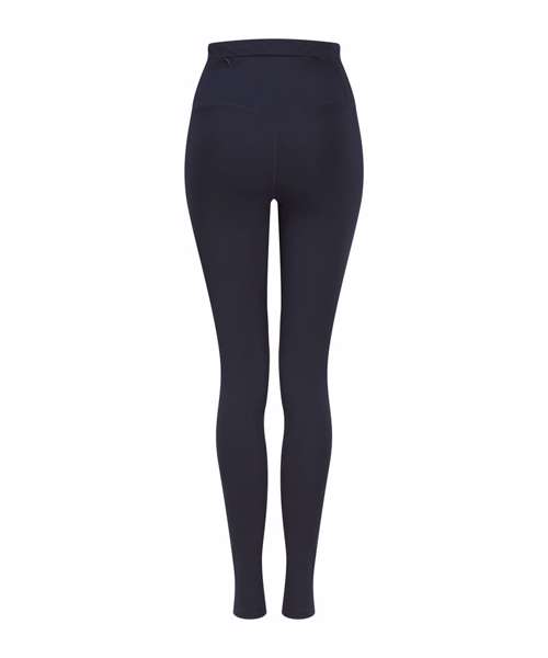 High-waisted leggings with inner drawcord. Concealed zip phone pocket on the rear waistband. No side seams for comfort. Contains 80% recycled polyester.