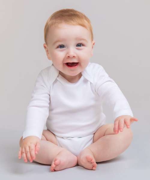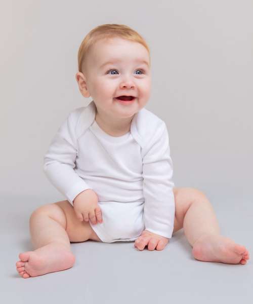 The long-sleeved baby bodysuit has been designed using the finest of fabrics and left blank for print and embroidery opportunities. The bodysuit conveniently features a YKK bottom popper fastening and is available in cheerful colours.