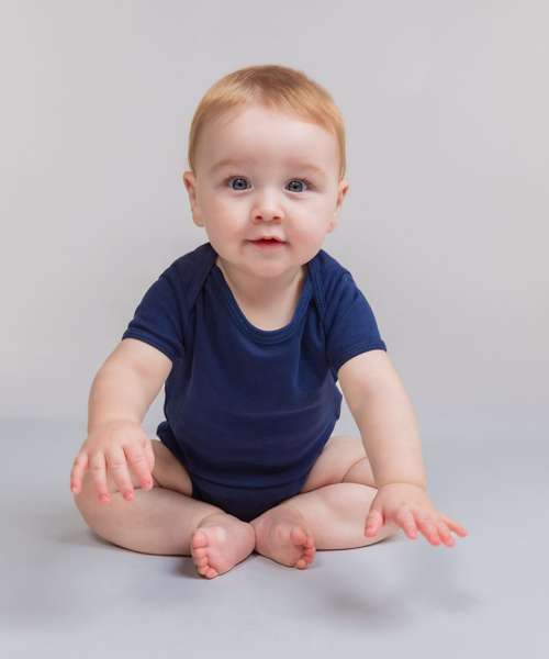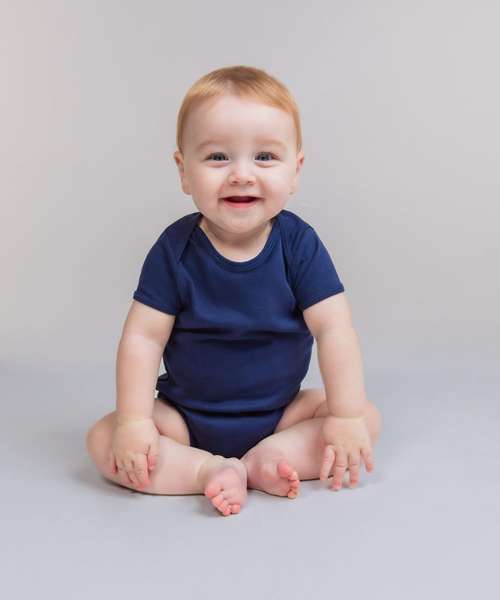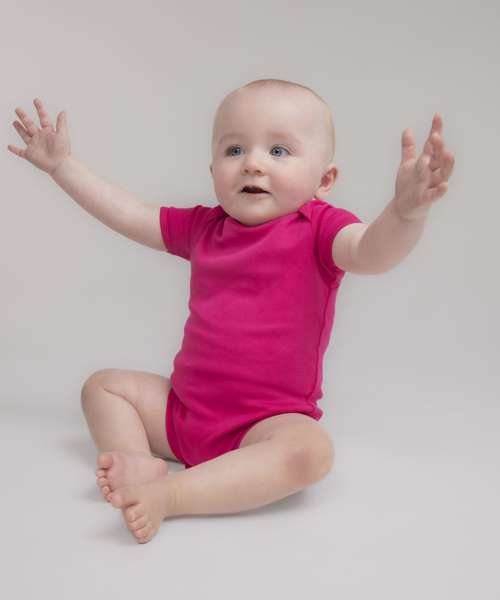 The short-sleeved bodysuit is made from the softest of cotton fabrics and gentlest of styling, with an array of bright colours available.