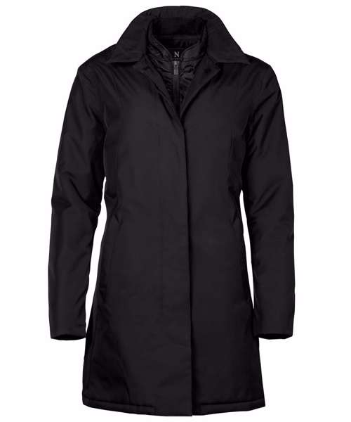 Removable chest warmer. Feminine ¾ length. Insulation with Sorona® Aura. Recycled fabrics. Water resistance 3000mm. Windproof. Breathability: 3000gsm/24h. Water-repellent finish (Bionic Finish® ECO). Outer fabric: Recycled fabric. Water-repellent - Bionic Finish® ECO impregnation. Padding - Sorona® Aura insulation (made from 30% Bio-based fabric). Global Recycled Standard (GRS Certified, CU1038206).