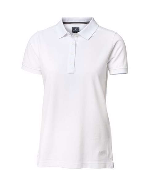 Classic two-thread piqué. Slightly stiff collar. Feminine styled four-button fastening. Combed organic cotton. Organic Content Standard 100 (OCS Certified, CU1038206).