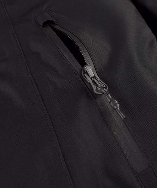 Chest pocket and side pockets with water-repellent YKK zip. Windproof and waterproof with taped seams. Back slit with hidden snap button on the back. Water-repellent finish (Bionic Finish® ECO). Windproof. Water resistance: 3000mm. Breathability 3000gsm/24h. Critically taped seams.