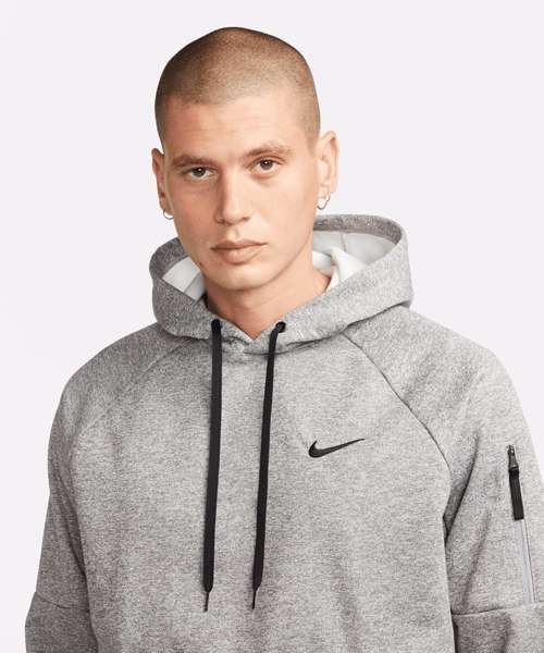 Bring the heat to your cold weather workout in the Therma-FIT pullover hoodie. Super-soft fleece keeps the comfort levels high while you take your exercise routine to the next level. A relaxed feel means you can stretch and bench without anything holding you back.