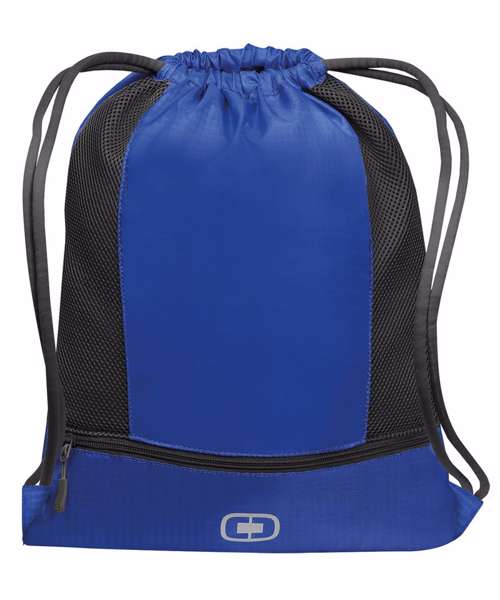 Easy access front storage pocket. Side water bottle stretch mesh pocket. Side stash valuables pocket. Stretch mesh phone pocket on shoulder strap. Carryall with drawstring top. Sling style, padded shoulder strap. Reach certified.