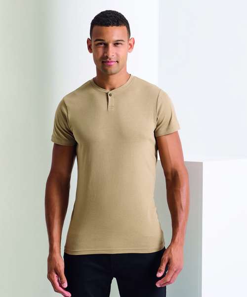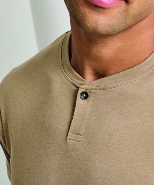 A popular style for service staff, this men’s short sleeve t-shirt is made from combination of certified recycled polyester and cotton. Designed with a single button on the placket and a narrow banded collar, this style has a soft feel to the fabric.