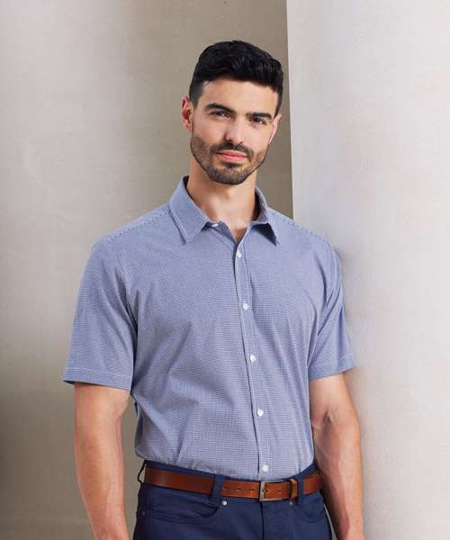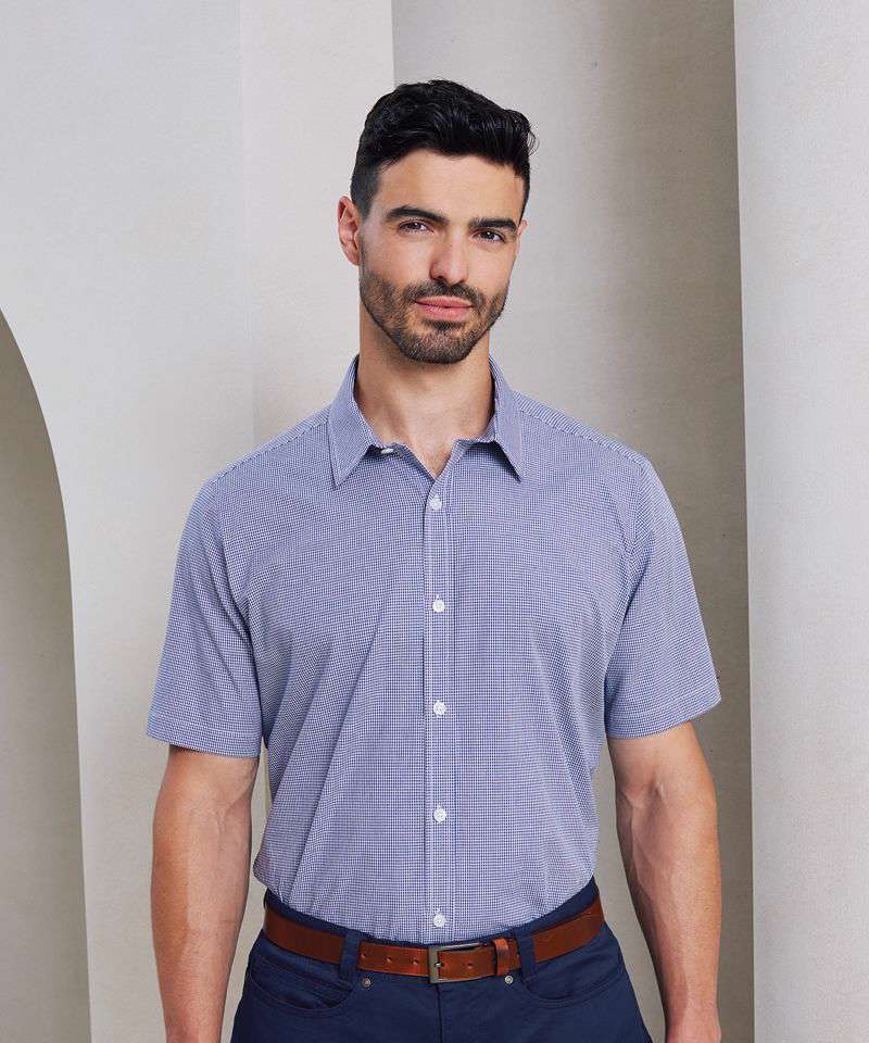 PR221: Microcheck (Gingham) short sleeve cotton shirt