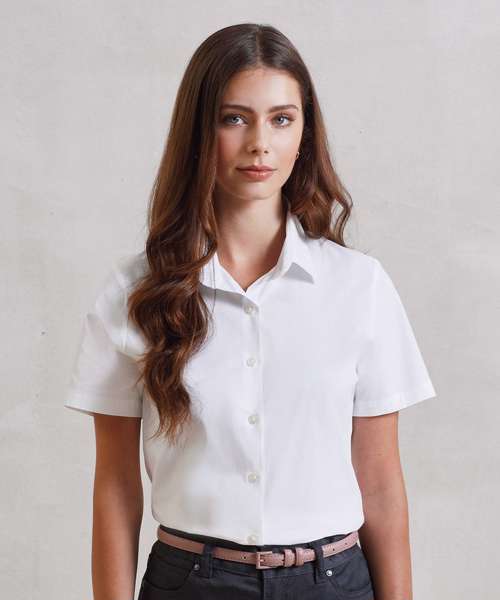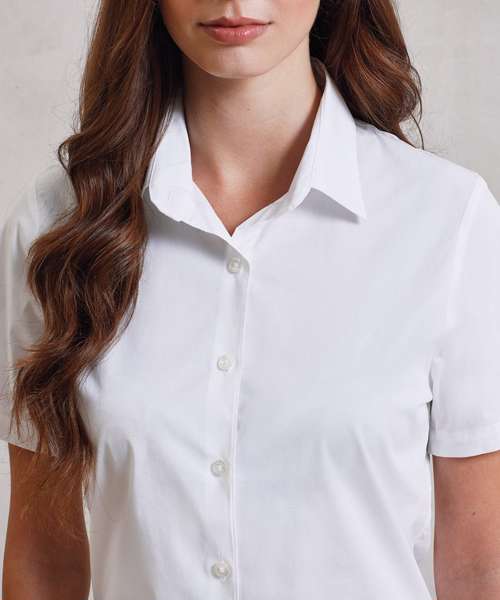 PR346: Women's stretch fit cotton poplin short sleeve blouse