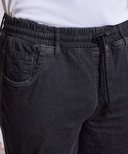 Cuffed ankle detail. Elasticated waist and drawcord. Stitched faux fly. Two swing pockets. Two patch pocket the rear.