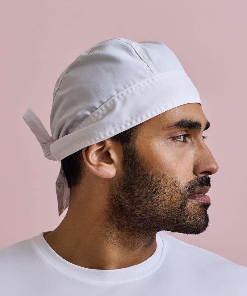 A popular piece of headwear seen in many kitchen and catering environments, this Zandana is easy wearing with two ties at the back providing adequate protection for staff working in hygiene sensitive environments.