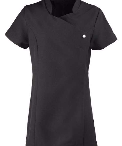Premier's 'Blossom' beauty and spa tunic has a feature button front fastening with a concealed zip. The short sleeves and princess seams along with side vents and a black pleat make for a practical garment that is easy to work in whilst retaining style.